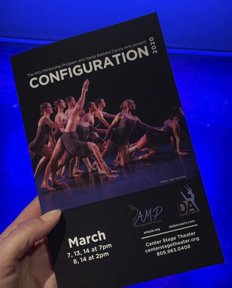 Center Stage Theater is a small theater with about 120 seats in the Paso Nuevo Mall, right above California Pizza Kitchen. My dance studio’s company, Santa Barbara Dance Arts, has a nonprofit called the Arts Membership Program (AMP) that helps fund company. We put on a show called, Configuration. It’s quite a big event, with 5 shows over two weeks, and almost everyone gets sold out.